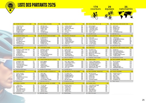 liste des partants 2025 174 29 25 coureurs équipes nationalités 25