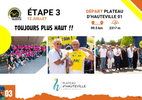 ÉTAPE 3 DÉPART PLATEAU 12 JUILLET D’HAUTEVILLE 01 TOUJOURS PLUS HAUT !! 99.5 km 2317 m 03 38