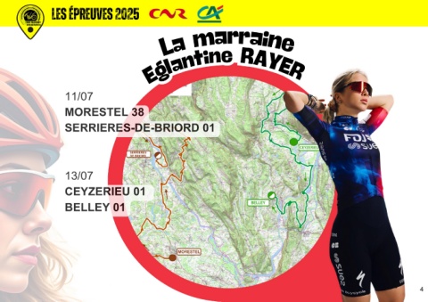 les épreuves 2025 La marraine La marraine Eglantine RAYER Eglantine RAYER 11/07 MORESTEL 38 SERRIERES-DE-BRIORD 01 13/07 CEYZERIEU 01 BELLEY 01 4