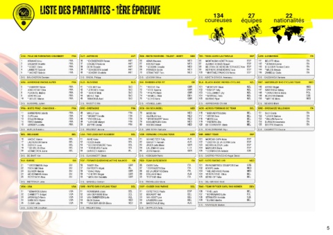 liste des partantes - 1ère épreuve 27 22 134 coureuses équipes nationalités 5